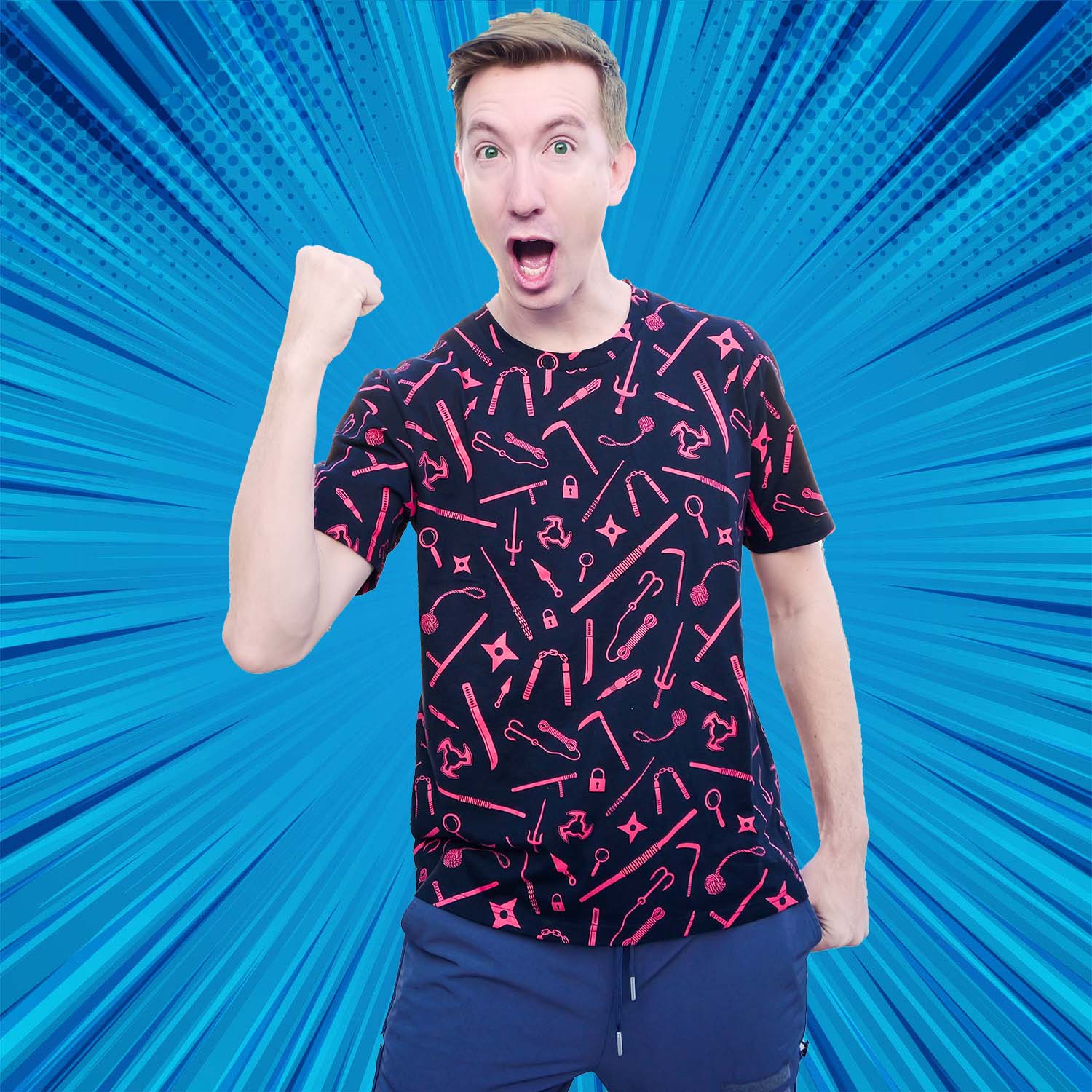 With the cool red-on-black design, this t-shirt is Chad all over. Wear it to school and find your fellow Spy Ninja squad and Chad fans! (As for everyone else, they'll just think you look super cool 😎. )